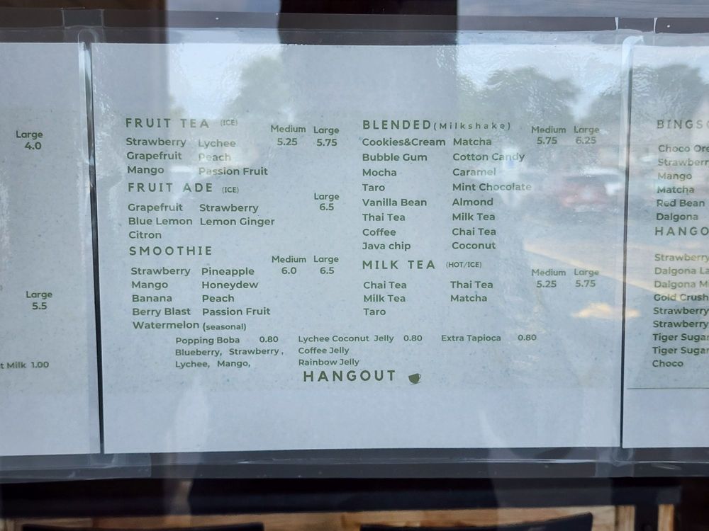Hangout Cafe is a vibrant spot in Palatine, IL, offering a mix of cafe delights, bubble tea, and fresh juices. The cafe provides various amenities, including delivery, takeout, reservations, wheelchair accessibility, and accepts credit cards and Apple Pay. Its hipster, casual, trendy ambiance is perfect for groups and dessert lovers with free Wi-Fi, TV, and catering services available. The menu features happy hour specials, alcoholic beverages, and even welcomes dogs. Hangout Cafe is a go-to destination for those seeking a cool hangout with a diverse menu and inviting atmosphere. I particularly enjoyed the refreshing bubble teas and the unique flavor combinations in their dishes, making Hangout Cafe a must-visit for foodies in the area.